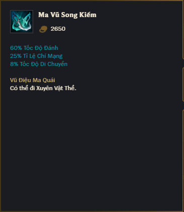 Ma Vũ Song Kiếm là một trong những trang bị không thể thiếu đối với những vị tướng xạ thủ hoặc tướng gây sát thương vật lý trong Liên Minh Huyền Thoại (LMHT). Với những chỉ số mạnh mẽ, khả…