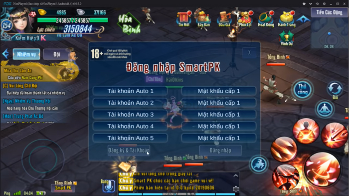 Các tính năng nổi bật của ứng dụng này bao gồm AutoTrain luyện công, giúp bạn nâng cao sức mạnh nhân vật nhanh chóng. Bên cạnh đó, việc tham gia các hoạt động Bang Hội như Võ Lâm Minh Chủ và Tranh Đoạt Lãnh Thổ cũng trở nên dễ dàng hơn bao giờ hết. SmartPK không chỉ làm việc hiệu quả mà còn đảm bảo không giật lag, cho phép bạn treo game nhiều ngày liền mà vẫn giữ được hiệu suất cao.