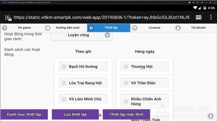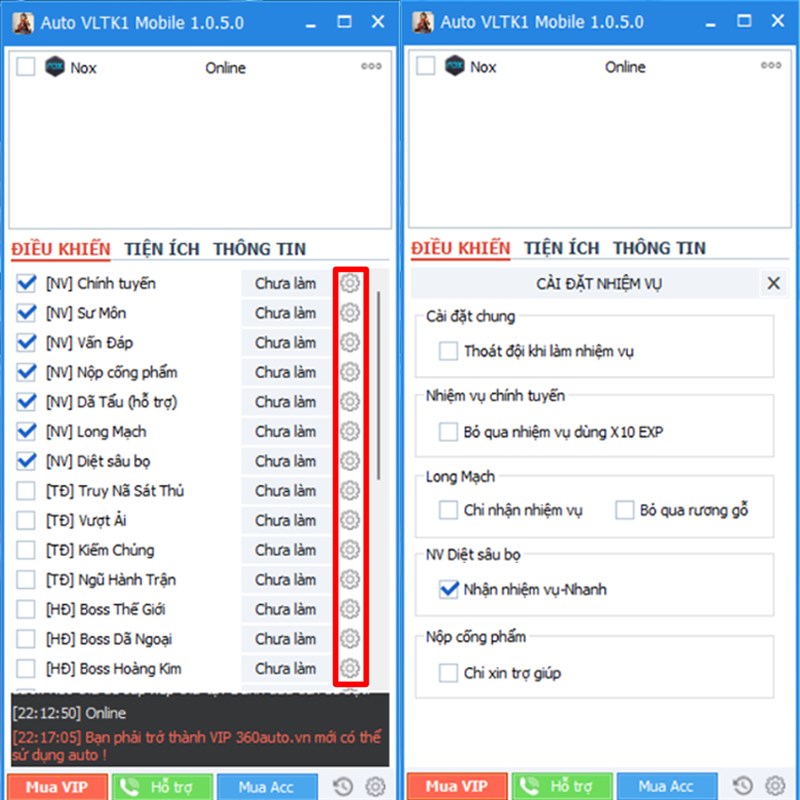 Việc thiết lập Auto vô cùng đơn giản. Chỉ cần khoảng 5 phút để cấu hình cơ bản, bạn đã có thể tham gia hết mọi hoạt động trong game. Ngoài ra, giao diện của công cụ cũng rất trực quan, dễ sử dụng, mang đến trải nghiệm thú vị cho người chơi. Tải ngay Auto VLTK Mobile để khám phá những tiện ích tuyệt vời này!