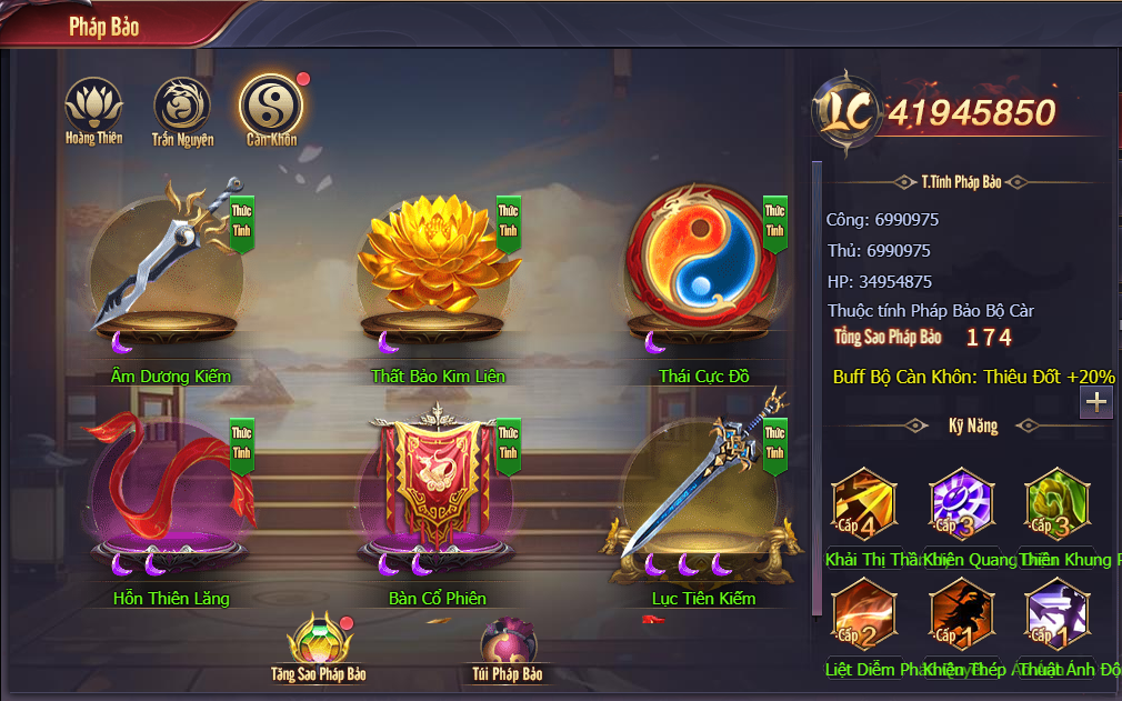 Ngoài ra, việc nâng cấp hào quang cũng cần đến Đan Hào Quang. Mỗi lần tăng cấp, hào quang xung quanh Khí Linh sẽ thay đổi, đồng thời chiến lực cũng được gia tăng đáng kể. Người chơi cũng có thể luyện hóa trang bị với các thuộc tính ngẫu nhiên, sử dụng Đá Hải Lam hoặc U Cốc Phỉ Thúy, điều này giúp tạo ra những trang bị mạnh mẽ hơn.
