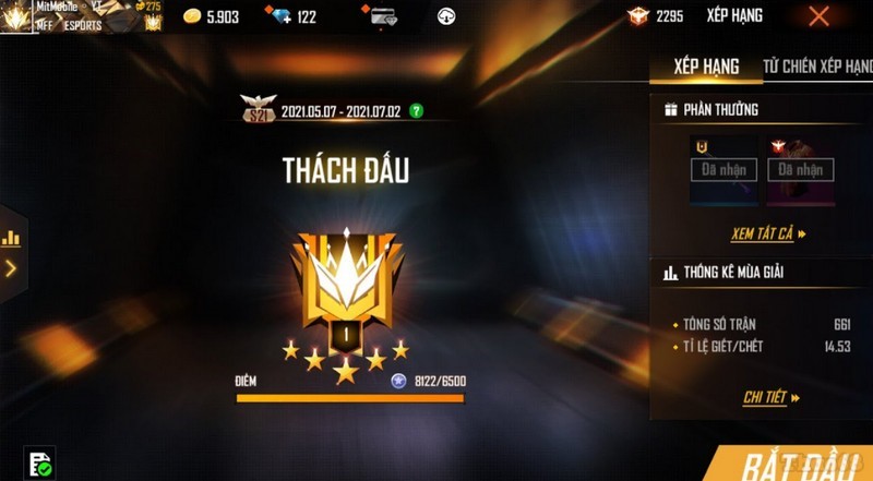 Rank cao nhất trong Free Fire chính là rank Thách Đấu. Để đạt được danh hiệu này, bạn phải nằm trong top 300 người chơi có số điểm cao nhất trên toàn quốc sau mỗi mùa giải. Đây thực sự là một thách thức lớn, đòi hỏi sự kiên nhẫn và kỹ năng chơi game vượt trội.
