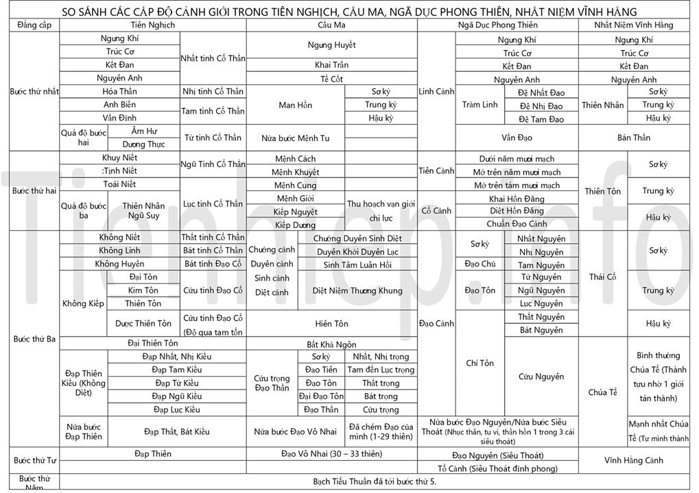 Khi bước vào Trung và Thượng cảnh giới, người tu tiên sẽ trải qua nhiều thử thách và học hỏi để phá bỏ khối kiến thức cũ, đả thông tiên khiếu, vì tổng cộng có 36 tiên khiếu cần mở ra. Chỉ khi vượt qua những giai đoạn này, họ mới có thể trở thành bá chủ của các phương chư thiên, chinh phục thế giới.