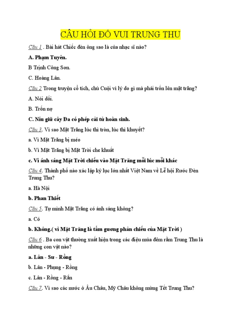 Hãy để trẻ em thỏa sức sáng tạo và tìm ra lời giải cho những câu đố thú vị này, từ đó giúp các bé không chỉ yêu thích Tết Trung thu hơn mà còn hiểu rõ hơn về ý nghĩa của dịp lễ truyền thống này.