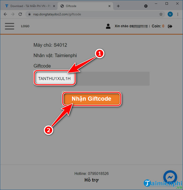 Sau khi đăng nhập xong, chọn server mà bạn đang chơi, và sau đó chọn nhân vật cần đổi code. Giai đoạn tiếp theo là bạn sẽ thấy mục Giftcode. Hãy bấm vào đó để nhập mã code, ví dụ như TKCMDLQK để nhận những phần quà hấp dẫn. Đừng quên nhấn nút Nhận sau khi nhập code nhé!