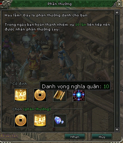 Để tăng danh vọng nghĩa quân trong Kiếm Thế, bước đầu tiên mà các bạn cần thực hiện là hoàn thành 10 nhiệm vụ đầu tiên. Mỗi nhiệm vụ sẽ mang về cho bạn 10 điểm danh vọng cùng một trong những phần thưởng giá trị như kinh nghiệm, bạc khóa,… Đây là cơ hội tuyệt vời để tích lũy điểm số cũng như nhận được những phần thưởng hữu ích.