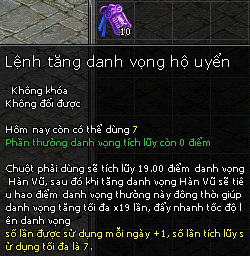 Ngoài ra, việc sử dụng Lệnh Tăng Danh Vọng Hộ Uyển cũng là một cách hiệu quả để tăng điểm nhanh chóng. Mỗi lần sử dụng, bạn sẽ nhận được 19 điểm danh vọng Di Tích, giúp bạn tiến gần hơn tới các cấp độ cao hơn. Đừng quên rằng số điểm tích lũy không chỉ giúp bạn mua trang bị mạnh mẽ mà còn mở ra nhiều cơ hội giao lưu với các chiến hữu khác trong thế giới Kiếm Thế.