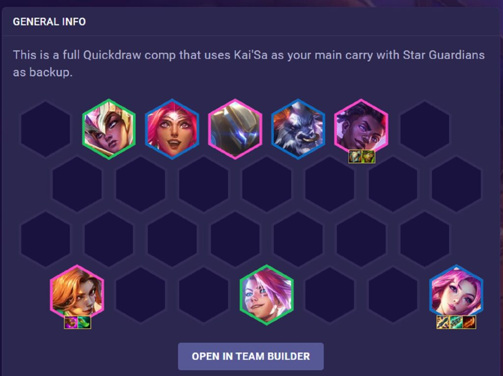 Ngoài ra, đội hình này cực kỳ dễ sử dụng, không yêu cầu quá nhiều điều kiện để thành công. Chỉ cần bạn có chiến thuật hợp lý và biết cách sắp xếp đội hình phù hợp, chắc chắn Kai’Sa sẽ giúp bạn đạt được những vị trí cao trong trận đấu. Với meta hiện tại, đây là lựa chọn không thể bỏ qua cho những ai yêu thích sự nhanh nhẹn và mạnh mẽ!