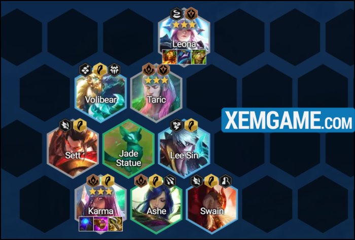 Đội hình DTCL Karma Chiến Binh Rồng đang nổi lên như một lựa chọn hot trong meta mùa 7.5. Với các tướng như Illaoi, Shen và Volibear, đội hình này không chỉ có khả năng chống chịu tốt mà còn mang lại sát thương mạnh mẽ từ những tướng chủ lực như Karma. Karma, với Bùa Xanh, là trung tâm của đội hình, giúp tăng tốc độ hồi năng lượng và phát huy tối đa khả năng của các kỹ năng.