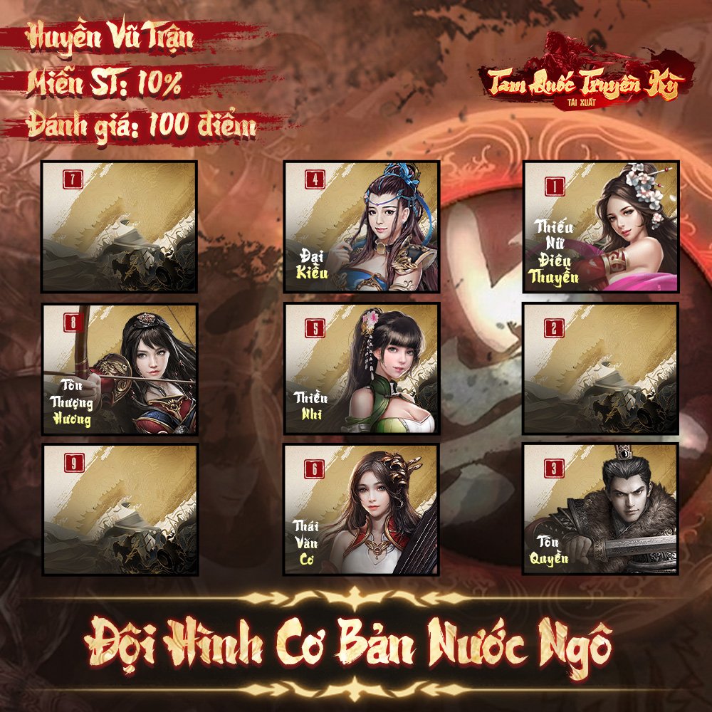 Khi bắt đầu, bạn có thể xem xét lựa chọn kết hợp như Ngô Tôn Thượng Hương với Chu Thái hay Tôn Quyền kèm theo hai tướng vũ địa và một tướng tank. Đội hình này không chỉ giúp tăng tỷ lệ thắng mà còn nâng cao khả năng tiến bậc cho các tướng trong suốt quá trình chơi.