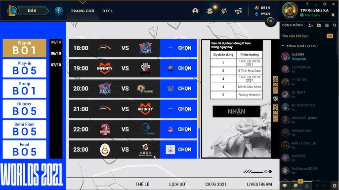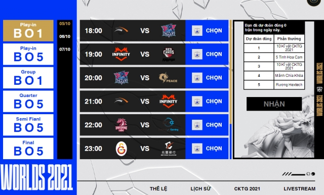 Sự kiện “Dự Đoán CKTG 2021” diễn ra từ 01/10/2021 đến 14/11/2021 không chỉ mang đến những khoảnh khắc hồi hộp cho cộng đồng game thủ mà còn là cơ hội để họ thể hiện sự am hiểu về game. Người chơi tham gia sự kiện qua tính năng Pick’Ems, giúp họ có cơ hội nhận phần quà hấp dẫn khi dự đoán chính xác các trận đấu.