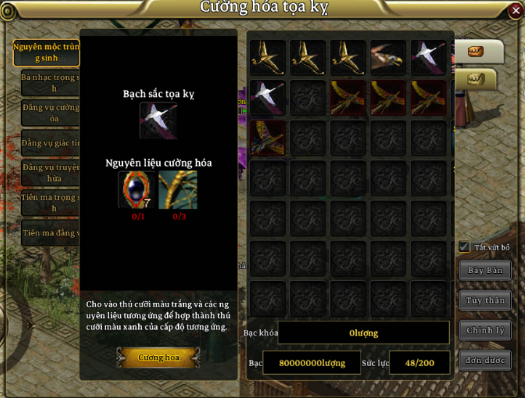 Khi đã có nguyên liệu như Dung Tinh Lộ, Hồng Hồ Lô hay Ngọc Hư Phù, bạn có thể giúp thú cưỡi của mình thức tỉnh bản năng. Đặc biệt, để ép thú cưỡi hoàng kim cấp 1, bạn sẽ cần 100 vàng và một số nguyên liệu từ thợ đồng. Việc tìm bá lạc nhãn cũng khá đơn giản, có thể thông qua mua bán với người chơi khác hoặc khám phá các khu vực như đi đào khoáng.