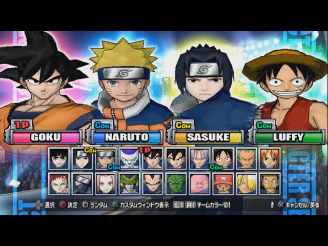Trong game, bạn có thể tạo một đội hình gồm 3 nhân vật chính cùng 1 trợ thủ, lựa chọn từ hơn 18 hero nổi bật trong tất cả các series. Tham gia vào những trận đấu nghẹt thở giữa các nhân vật như Goku, Naruto hay Monkey D. Luffy, cuộc chiến trở nên kịch tính hơn bao giờ hết. Hãy thử thách chính mình hoặc cùng bạn bè chiến đấu trong chế độ chơi cho hai người.