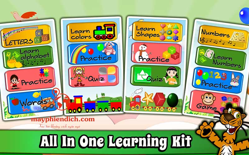 Với một môi trường học tập vui nhộn, game còn giúp trẻ em từ 3-8 tuổi học đọc, viết và nhận diện từ vựng thông qua các bài học thú vị. Hãy để con bạn khám phá thế giới tiếng Anh đầy màu sắc và bổ ích ngay hôm nay!