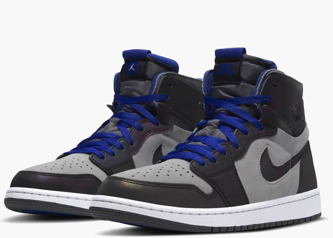 Air Jordan 1 High Zoom CMFT được thiết kế với tông màu phớt tím lấp lánh trên nền da trắng, phản ánh sự hoành tráng của chiếc cúp vô địch. Giai điệu màu Iron Grey, Light Smoke Grey, Racer Blue và White tạo nên một sự kết hợp hoàn hảo, làm nổi bật phong cách thể thao và hiện đại.