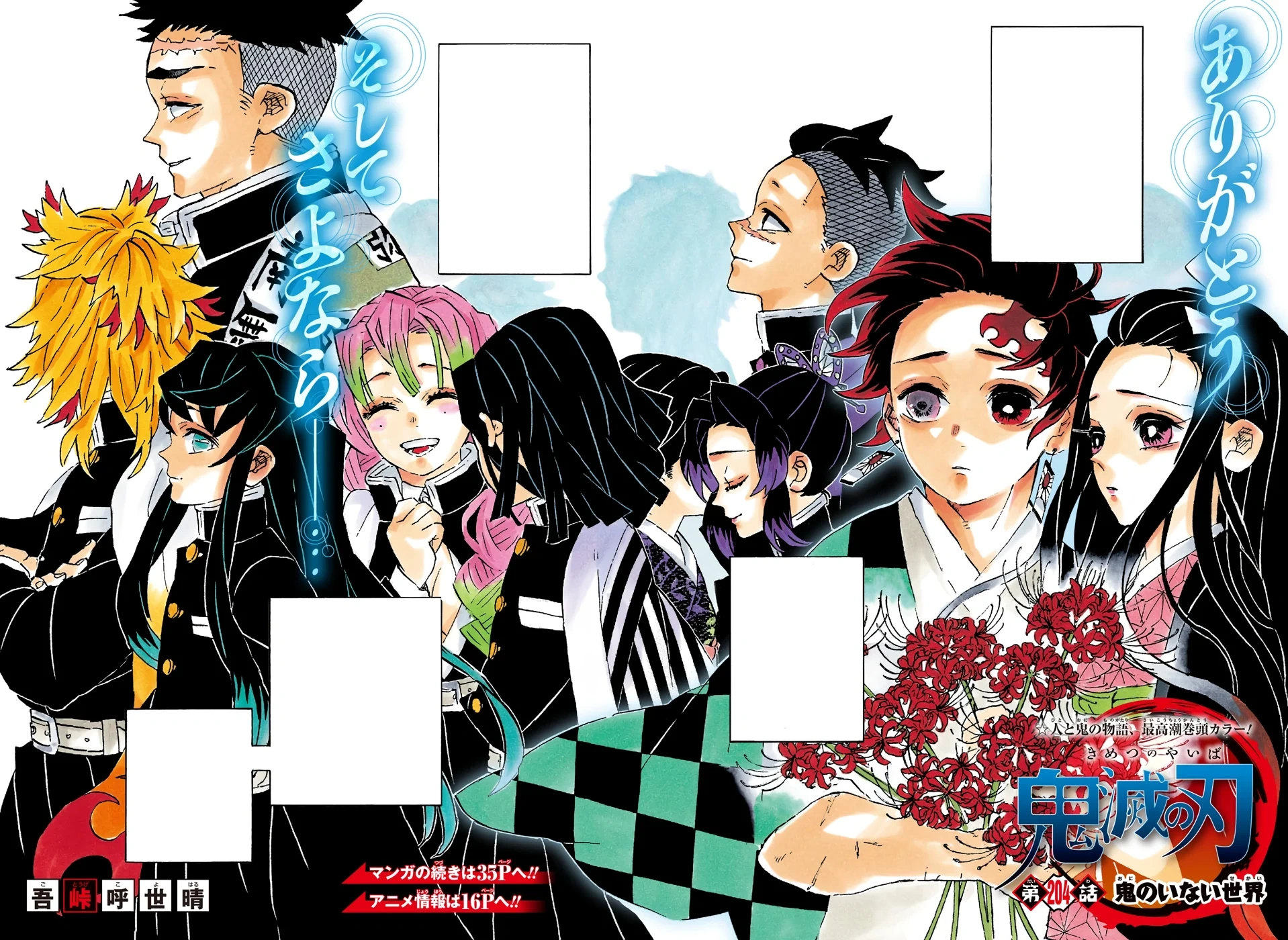 Trong Chapter 204 của “Thanh Gươm Diệt Quỷ”, tác giả Gotouge Koyoharu đã mang đến cho người đọc một cái kết đầy cảm xúc. Sau một thời gian dài chiến đấu, Quân đoàn Diệt Quỷ đã chính thức tan rã, đánh dấu sự kết thúc của cuộc chiến với Muzan Kibutsuji. Tanjirou, từng bị Muzan hóa quỷ, đã may mắn trở lại hình dáng con người nhờ thuốc của Trùng Trụ, tạo ra một tia hy vọng mới.
