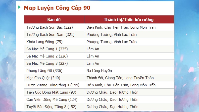 Với sự phong phú của các chướng ngại vật và sự đa dạng trong cách chơi, các bãi luyện công như Sa Mạc Địa Biểu hay Lưỡng Thuỷ Động ở cấp 8x và 9x sẽ mang đến cho bạn những thử thách thú vị. Sẵn sàng cho những cuộc phiêu lưu và chuẩn bị cho hành trình tăng cấp nào!