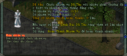 Khi hoàn thành các nhiệm vụ này, bạn sẽ tích lũy điểm và khi đạt đến những cột mốc như 1000, 2000 hay 10.000, bạn sẽ nhận được phần thưởng đặc biệt. Ngày mới bắt đầu vào lúc 00h00, bạn có thể đến NPC Dã Tẩu tại các thành thị để nhận nhiệm vụ mà không cần lo lắng về giới hạn.
