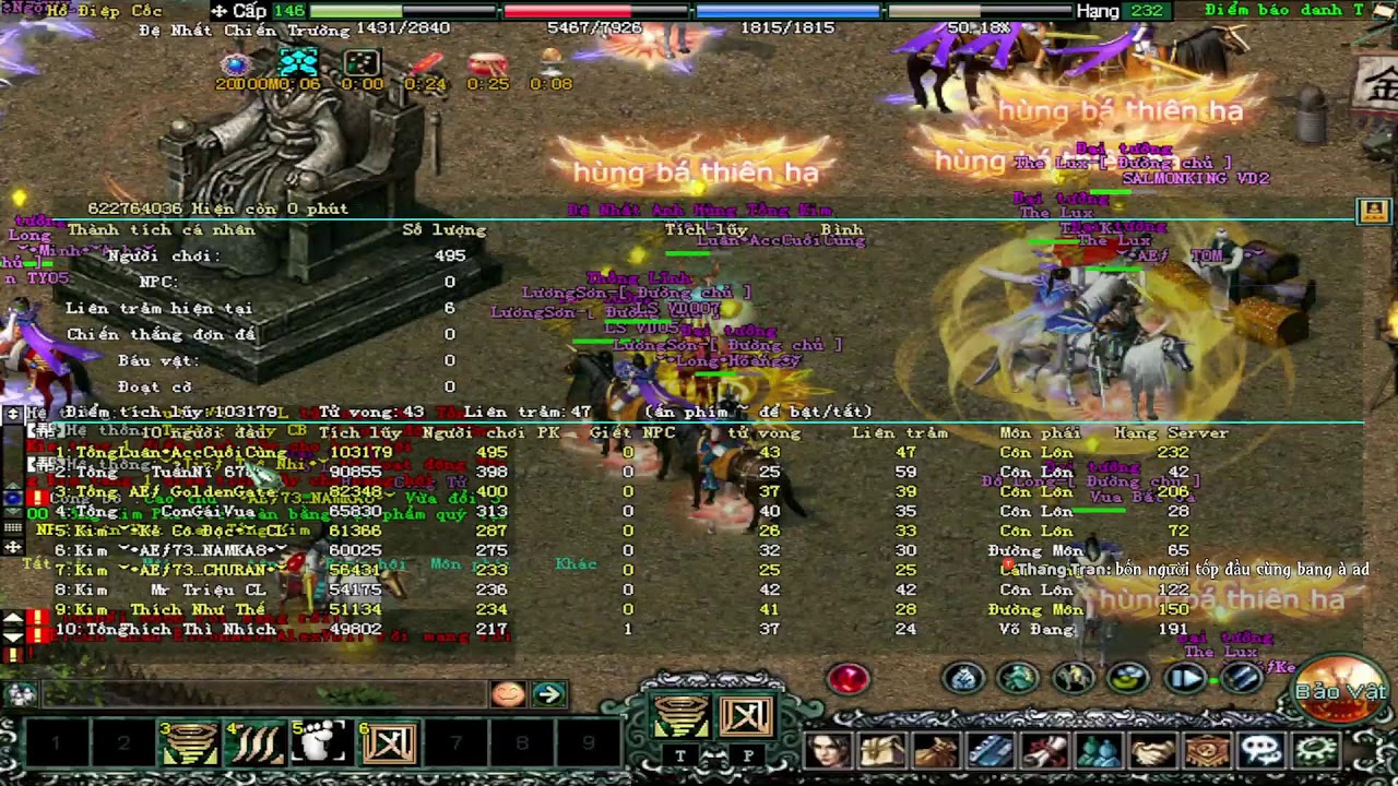 Sau khi báo danh, người chơi sẽ có thời gian chờ 10 phút trước khi trận đấu bắt đầu. Các trận đấu diễn ra với thời gian kéo dài khoảng 45 phút, và mỗi bên tối đa 200 nhân vật, tạo nên một không khí chiến trường sôi động và căng thẳng. Đặc biệt, những người đứng đầu bảng xếp hạng sẽ nhận được những phần thưởng hấp dẫn như máu đại và HNLL, trong đó top 1 sẽ nhận được 3 tốngkimbíbảo quý giá.
