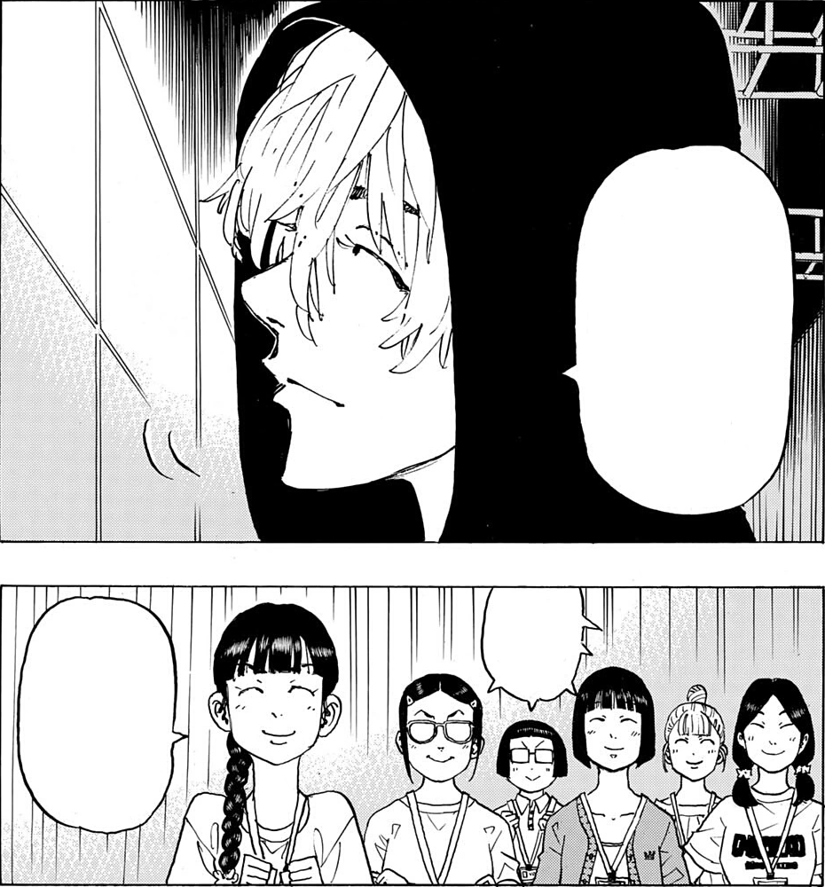 Dưới đây, nhóm Takemichi lặng lẽ theo dõi từng bước đi của Mitsuya. Họ không chỉ là những người bạn, mà còn là những người ủng hộ cho ước mơ của Mitsuya. Những bộ trang phục mà anh trưng bày trong cuộc thi thật sự ấn tượng và phản ánh đúng cá tính của mình.